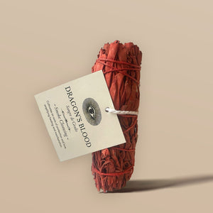 Weißer Salbei wird in heiligen Ritualen wegen seiner reinigenden und klärenden Wirkung verwendet, während Drachenblutharz – ein tiefrotes Baumharz – seit langem zur Unterstützung der Erdung, des energetischen Schutzes und der spirituellen Konzentration verbrannt wird. Zusammen ergeben sie eine kraftvolle Räuchermischung, die stagnierende Energie klären, rituelle Grenzen setzen und den Raum für Transformation oder Gebete vorbereiten kann.