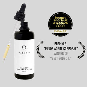 Dafna's Personal Skincare HARMONY SOOTHING BODY OIL is based on the same proven formula as their Serenity Calming Beauty Defense Face Oil. Because not only your face deserves this luxury, but also the rest of your wonderful body. It has a calming effect, provides intensive care and helps to repair the skin's barrier function and reduce irritation.
