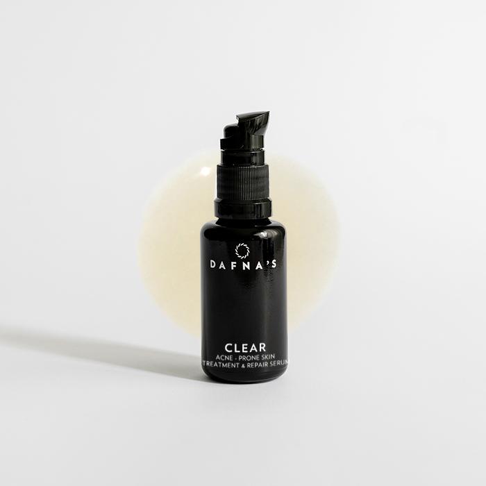 Das CLEAR Treatment & Repair Serum von Dafna's Personal Skincare sagt äußeren Faktoren (wie Umweltverschmutzung, das Tragen von Covid-Schutzmasken, Jahreszeitenwechsel, & Co.) sowie einem inneren Ungleichgewicht (Hormone, Stress,...) den Kampf an. CLEAR kann dabei helfen, dass sich deine Haut beruhigt und wieder in Balance kommt. Dein Hormonchaos wieder es aber nicht in den Griff bekommen ;)