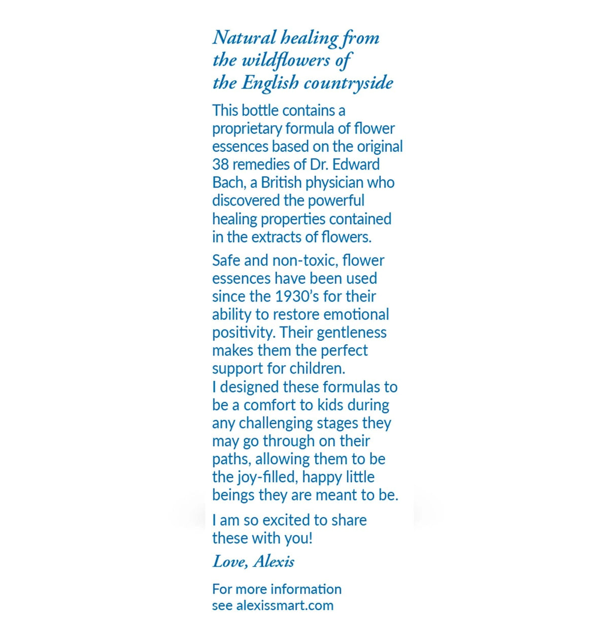 Handcrafted with organic vegetable glycerine (from coconuts), spring water and a proprietary blend of organic, wild-harvested *Bach flower essences.