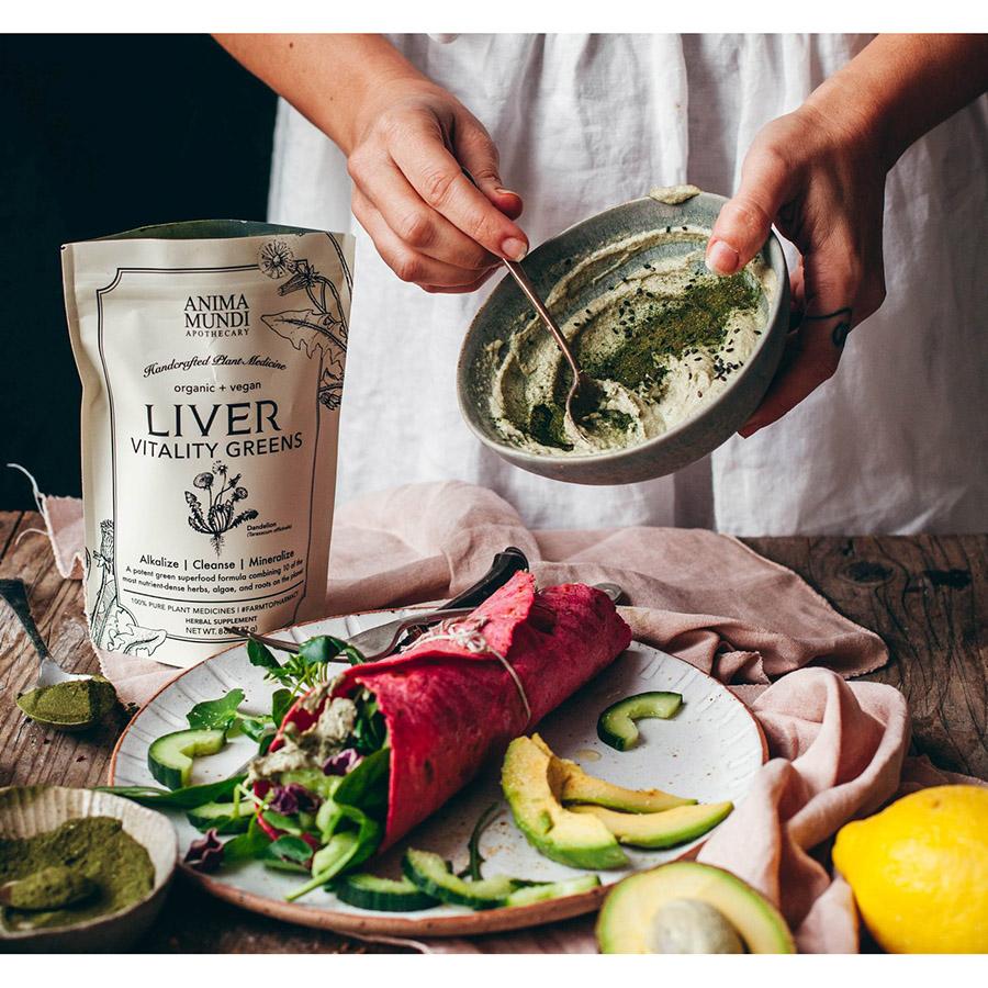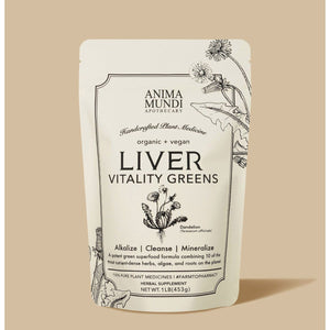 Diese kraftvolle Detox-Mischung ist eine ernährungsphysiologisch nährstoffreiche, therapeutische pflanzliche Detoxkur mit der Kraft deine Leber und Gallenblase täglich zu entgiften. Liver Vitality von Anima Mundi Apothecary kann deine gesamte Verdauung ankurbeln! Das intensiv grüne Pulver enthält eine wirksame Ladung krebshemmender chemischer Verbindungen, die für ihre Fähigkeit bekannt sind Schwermetalle, die Ansammlung von Umwelttoxizität und Stressfaktoren, die die gesamte Organfunktion hemmen, zu beseitigen.